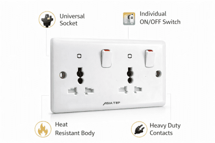 7-Day Replacement Warranty for complete peace of mind The ASIA TOP Universal Electrical Wall Socket is a premium-quality wall socket