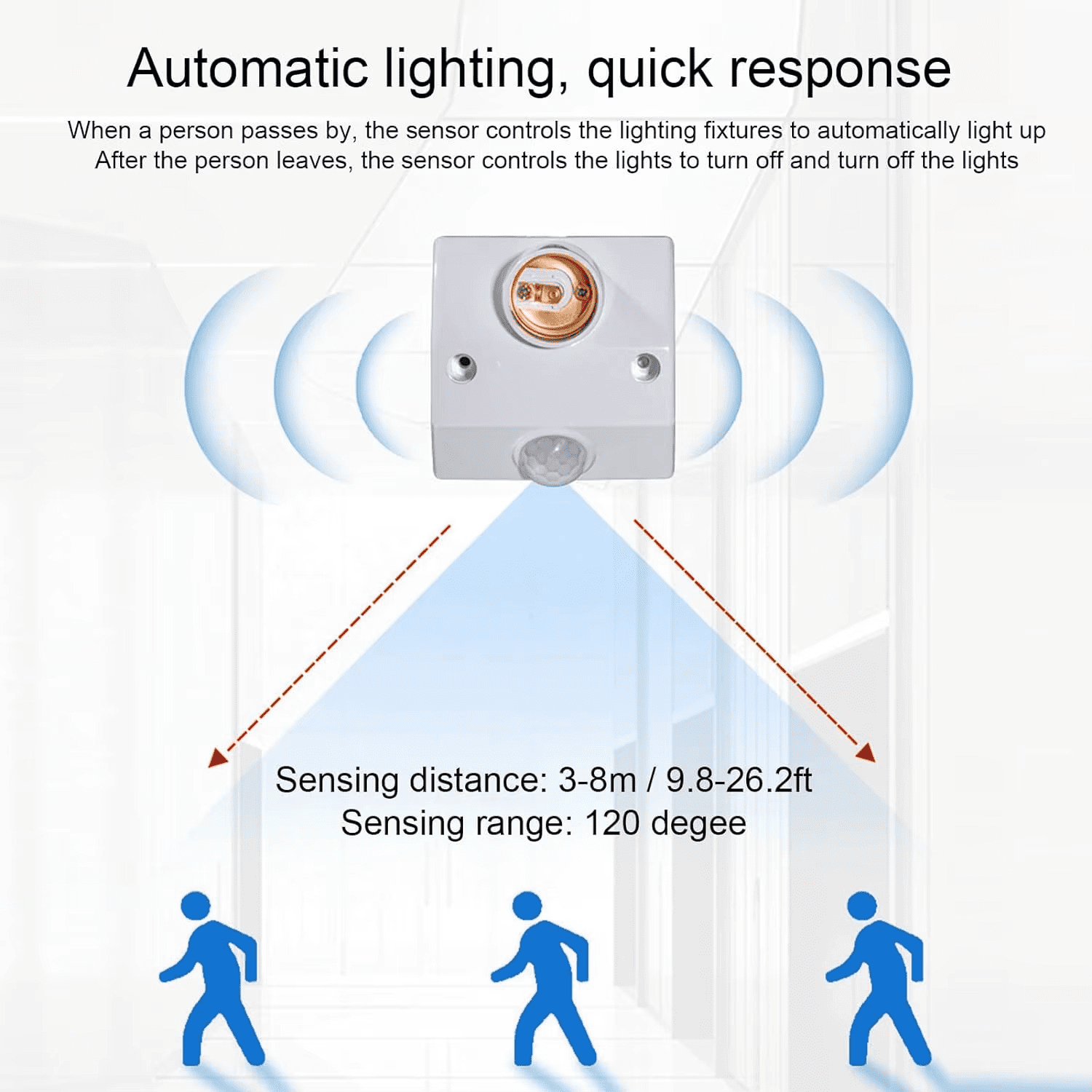 - It remains on for the set delay time, then switches off if no further motion is detected.