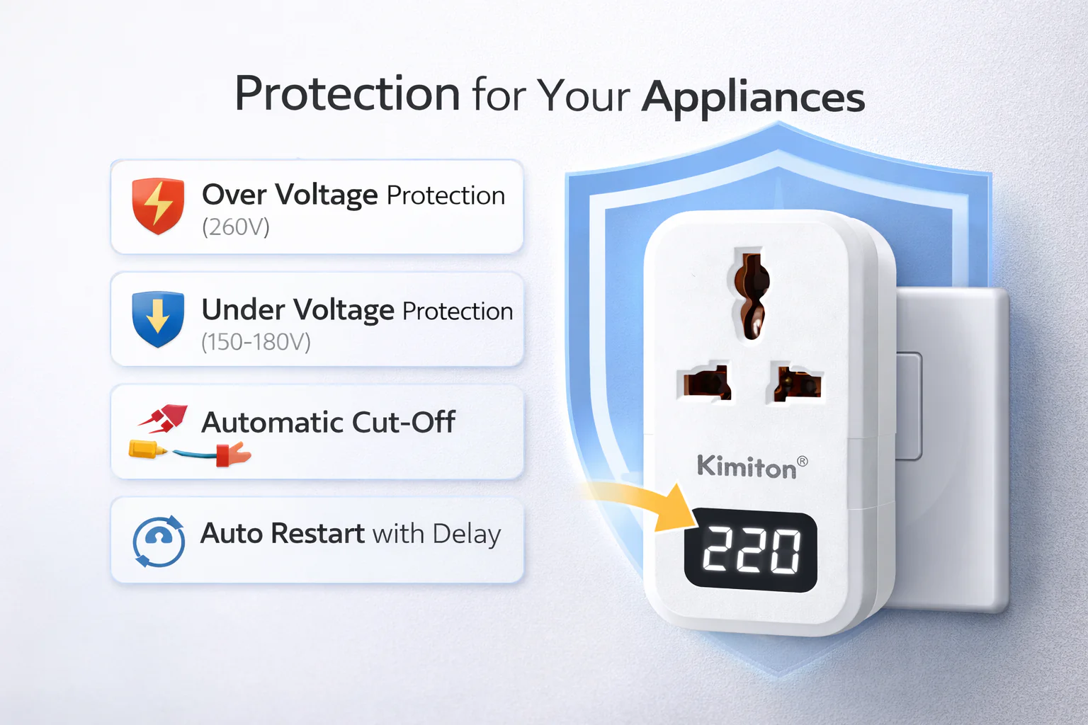 With the growing risks of power instability, it’s more important than ever to protect your electronic investments. The Kimiton Voltage Protector offers reliable, affordable, and intelligent protection — giving you peace of mind and extending the life of your appliances.