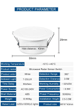 The Microwave Ceiling Mount Sensor is a compact, intelligent motion sensor designed to provide automatic lighting control in indoor environments. It uses microwave radar technology (operating at 4.1 GHz) to detect motion through doors, glass, or thin walls, making it more sensitive and accurate than traditional infrared (PIR) sensors.