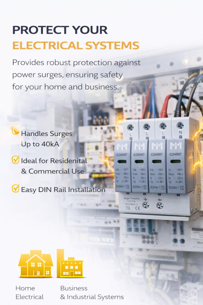 Protect your sensitive electronics and industrial machinery from unpredictable electrical events with the M&M G2040MT Surge Protective Device. This Type 2 (T2) arrester is specifically engineered to intercept and divert high-voltage spikes and lightning surges before they reach your equipment.