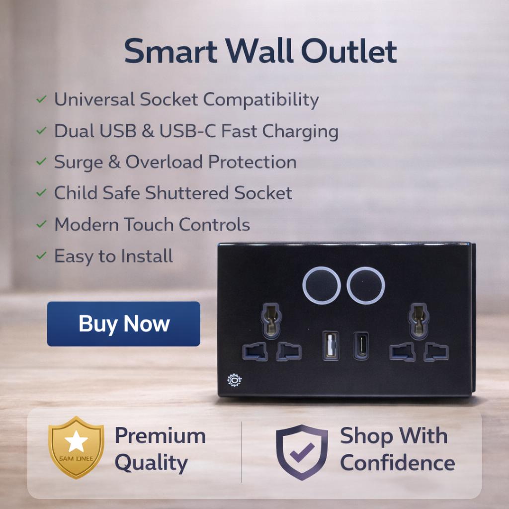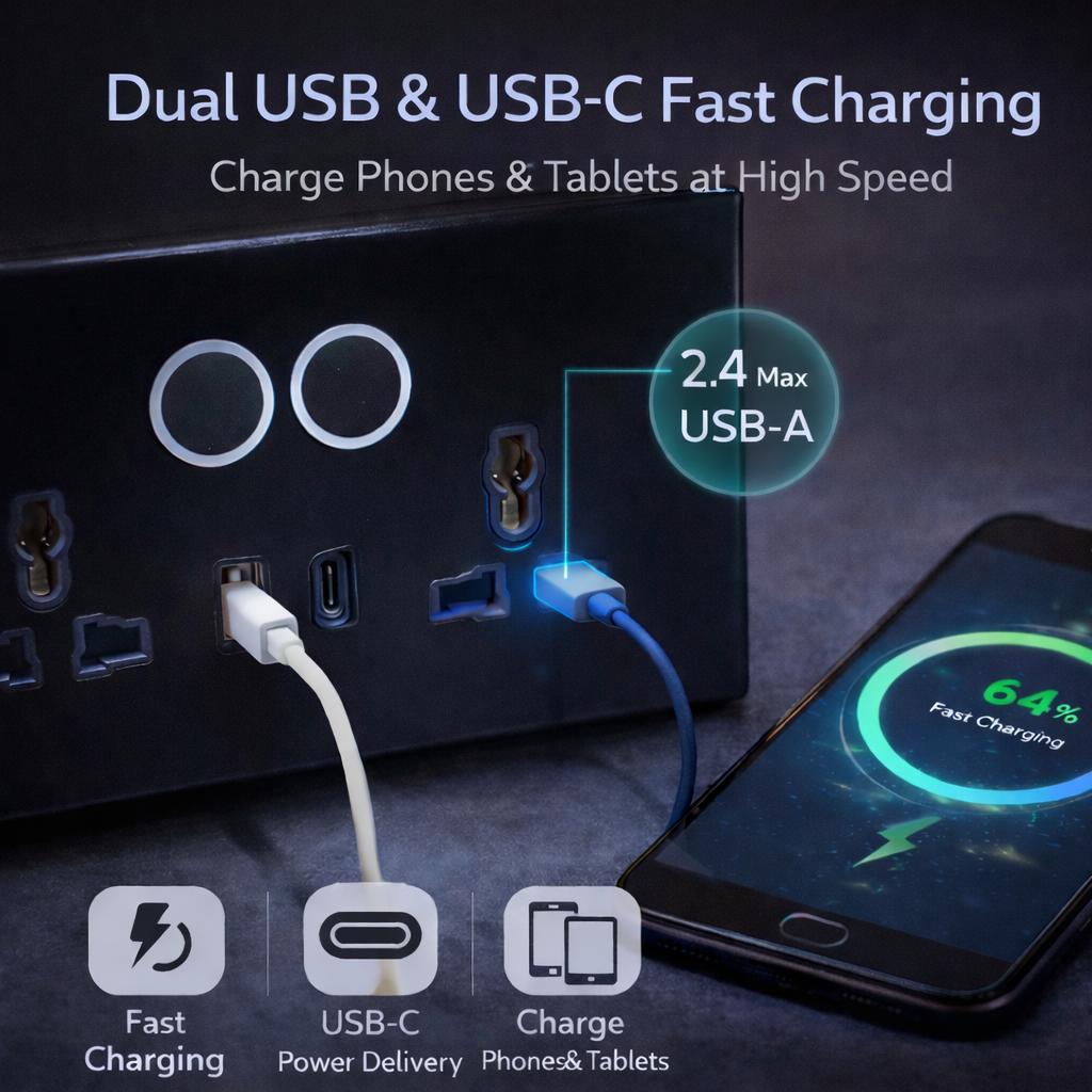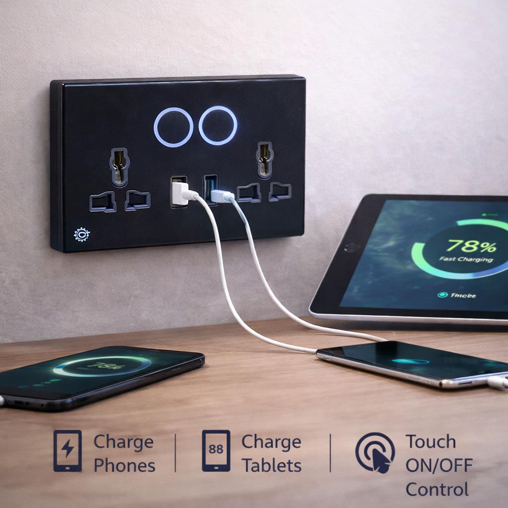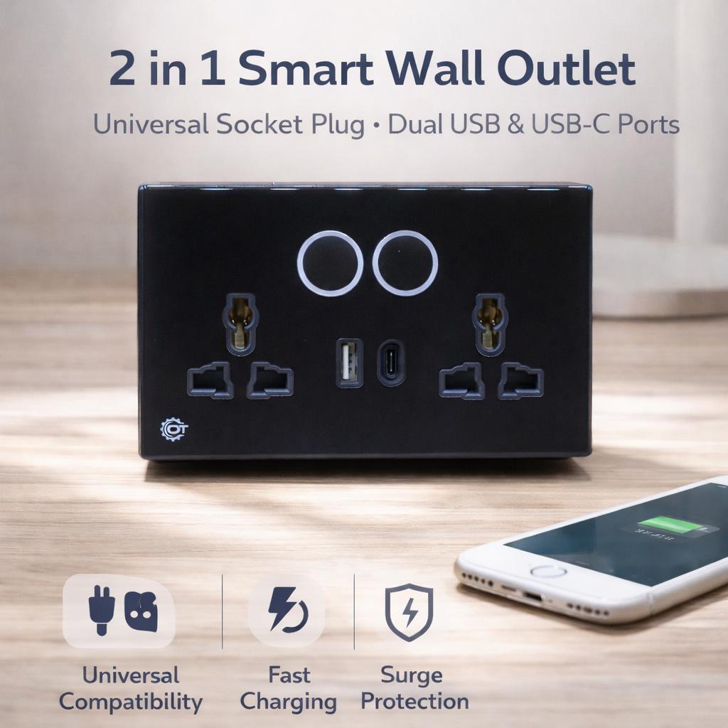 one touch smart home wall socket (black) with usb-a & usb-c charging ports