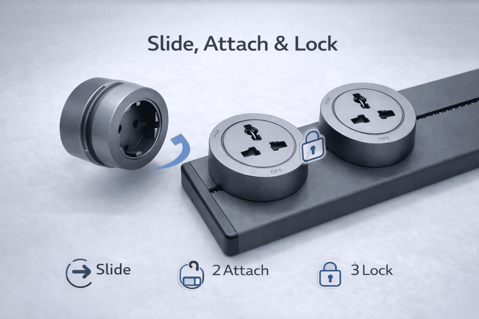 Each socket module features a mechanical twist-lock system, ensuring: