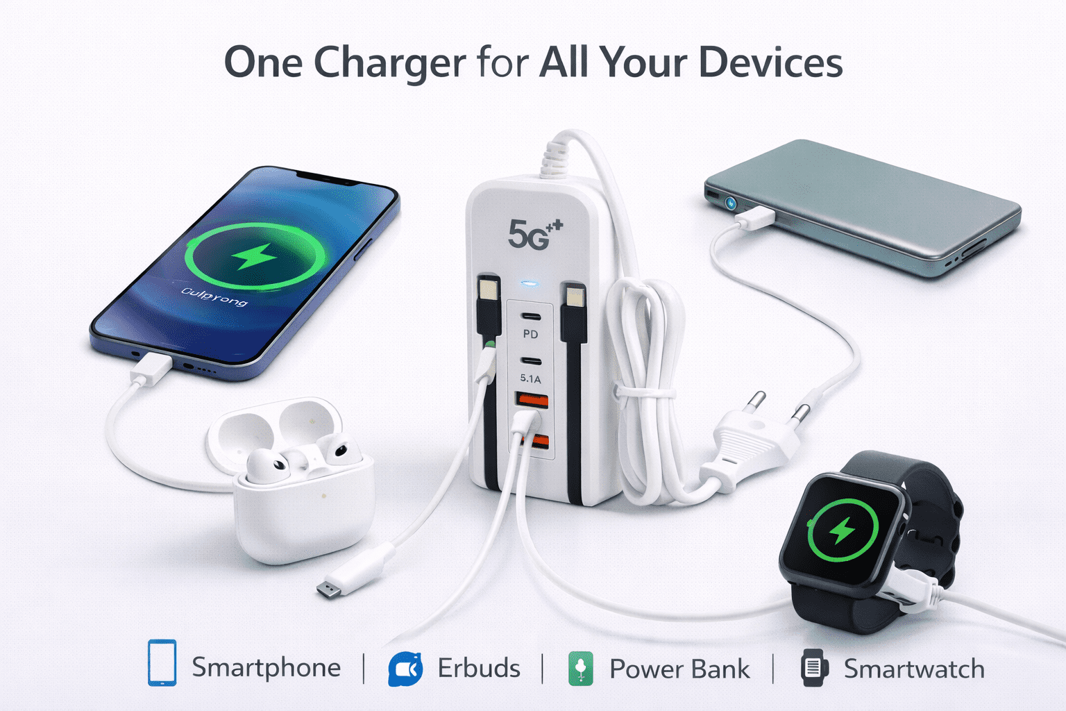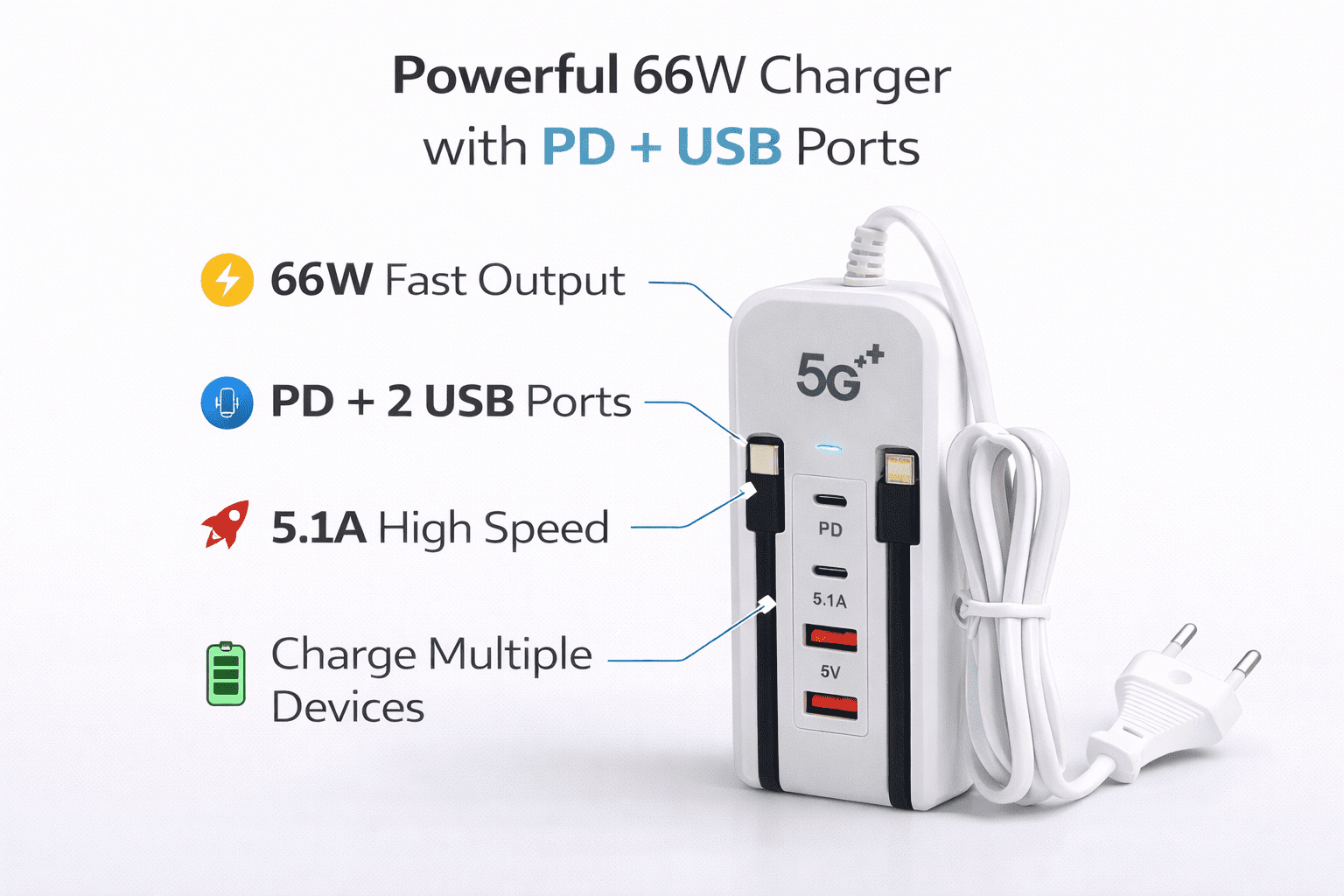 Multi-Function Fast Charger with PD & QC Ports – 5G Technology