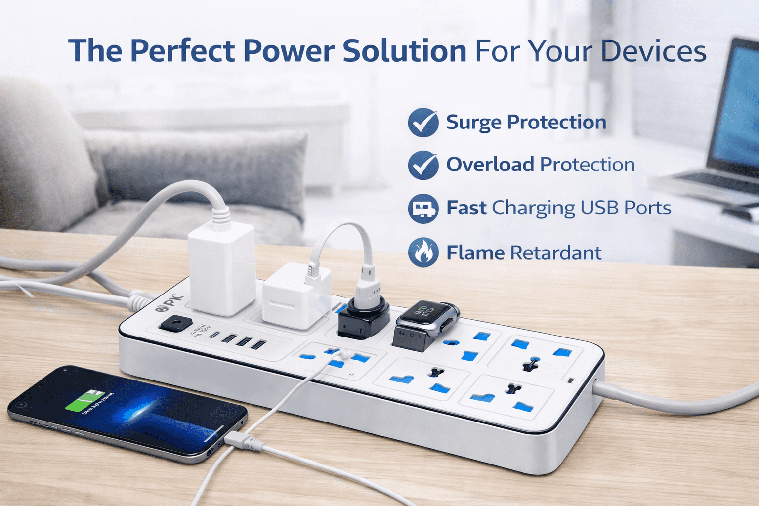 - Perfect for use in the living room, bedroom, or kitchen, this power strip allows you to keep all your essential devices powered, such as lamps, phones, laptops, and kitchen gadgets.