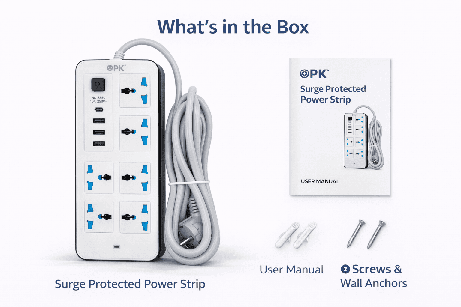 - Overload protection and short-circuit protection ensure that the power strip can handle multiple devices without risk of power surges or damage to connected devices.