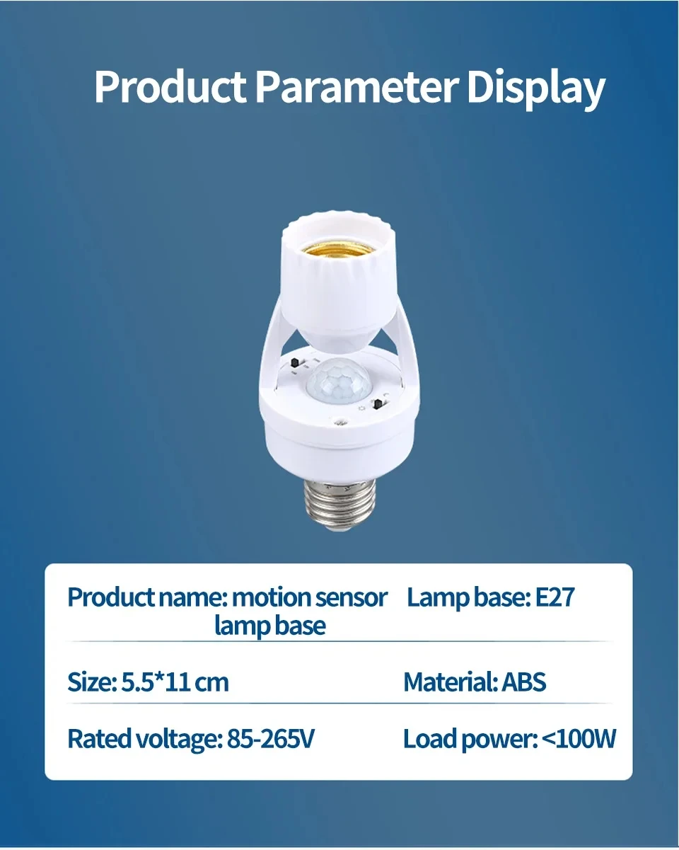 Home PIR Motion Sensor Smart Motion Sensor Light Bulb Holder E27 PIR Induction Sensor Adapter Lamp Base Converter Automatic LED Switch AC 110V 220V