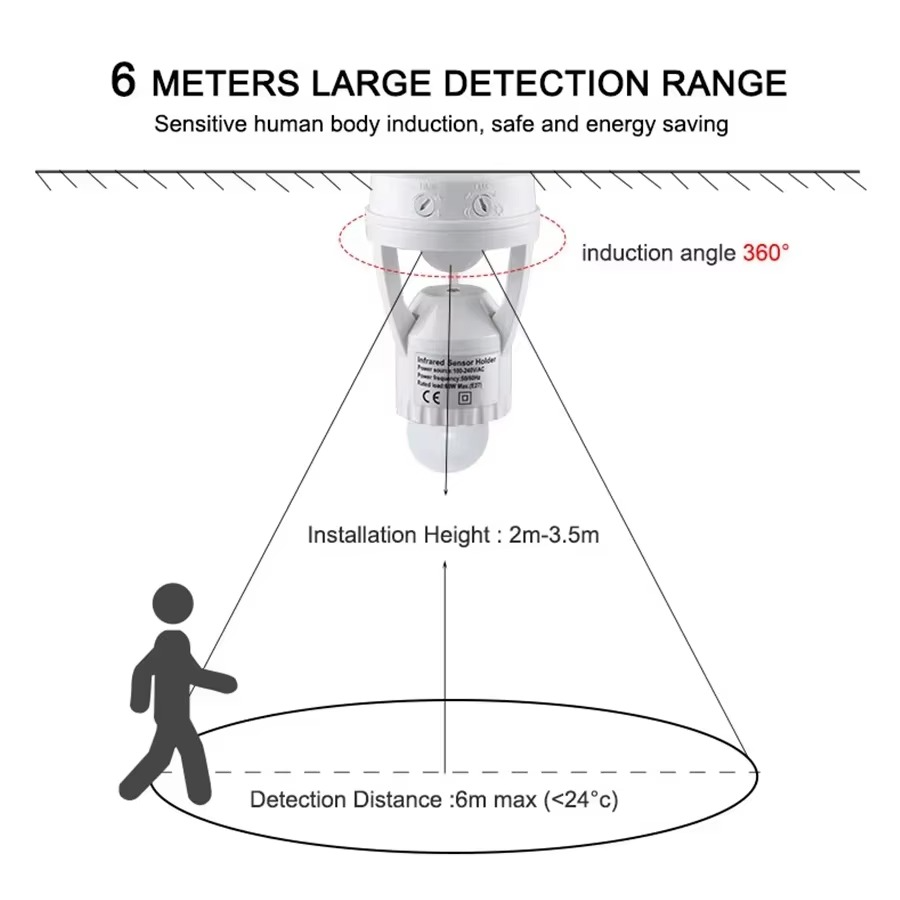 • Detection Range: Up to 6–10 meters (depending on installation height)