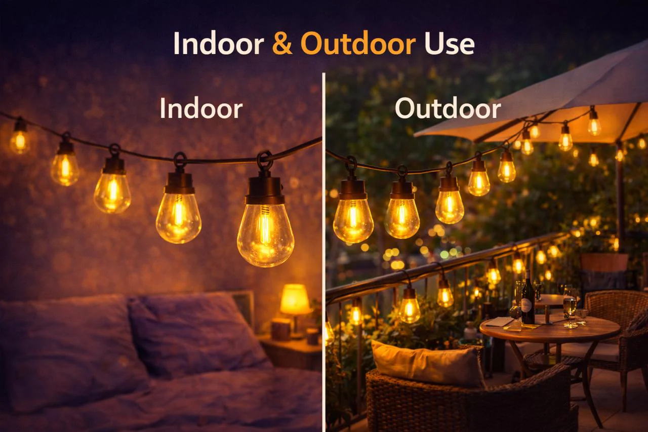 Ideal for both indoor and outdoor use, they are perfect for bedrooms, living rooms, balconies, patios, gardens, cafés, weddings, and festive celebrations. The classic bulb design paired with a durable cable delivers a timeless look while ensuring long-lasting performance.