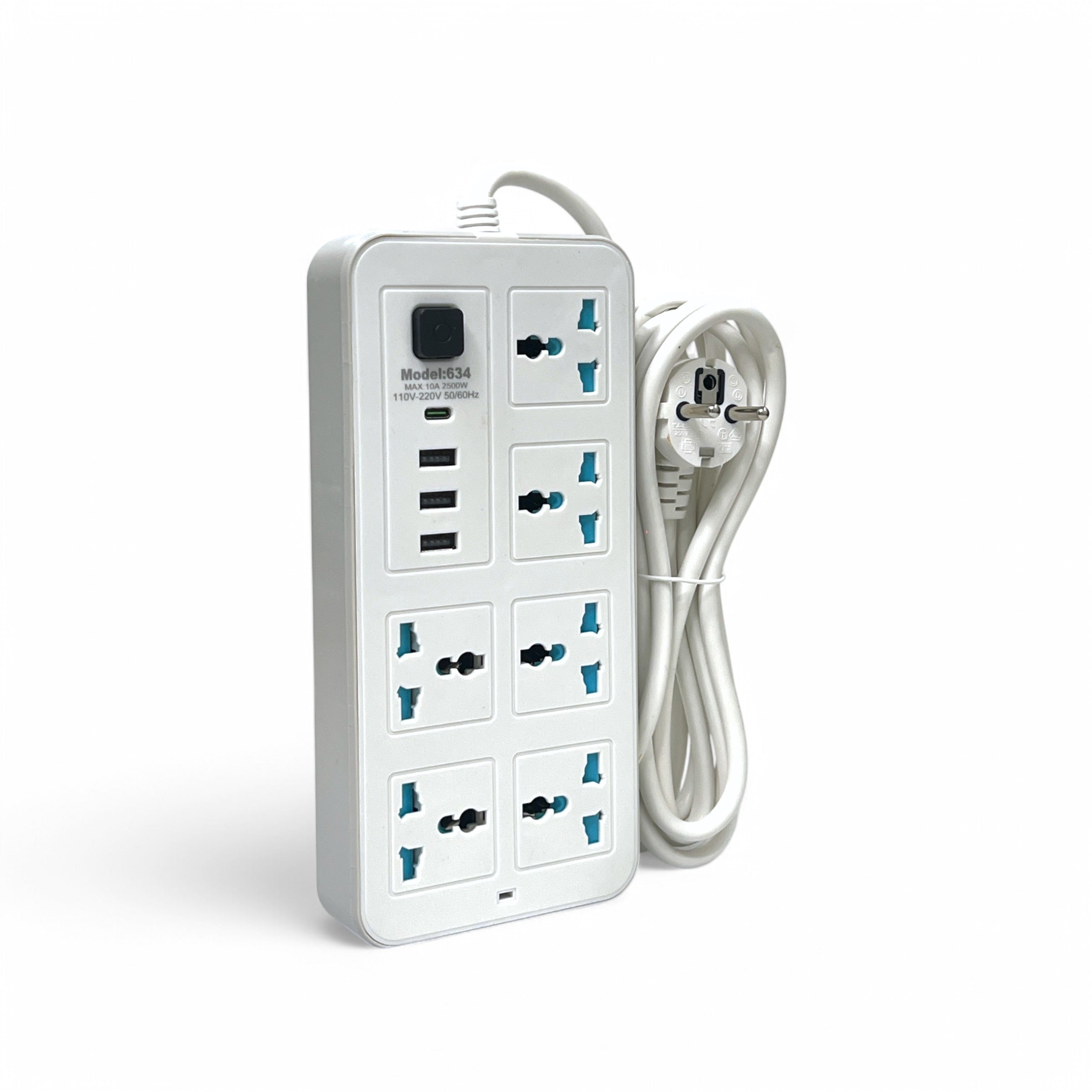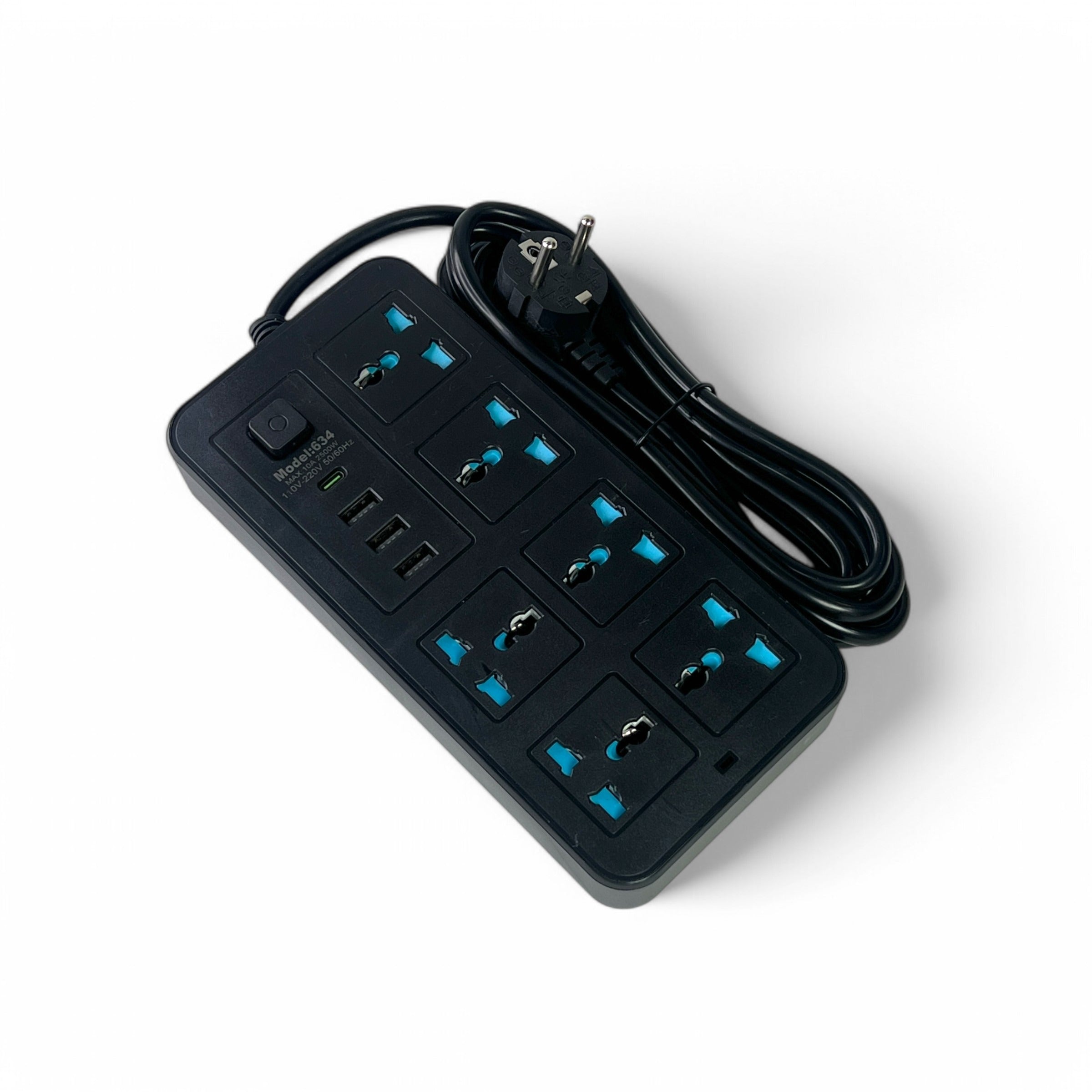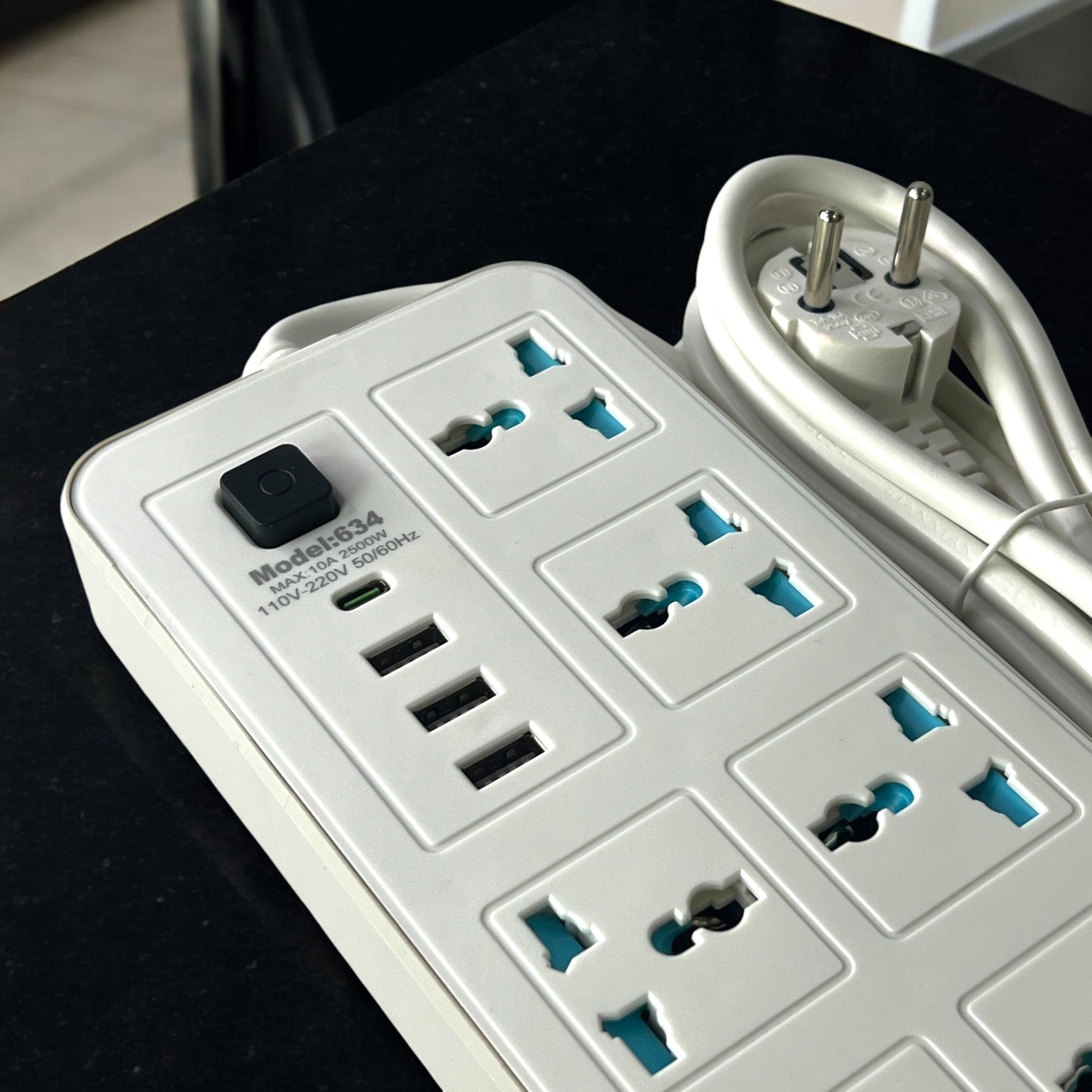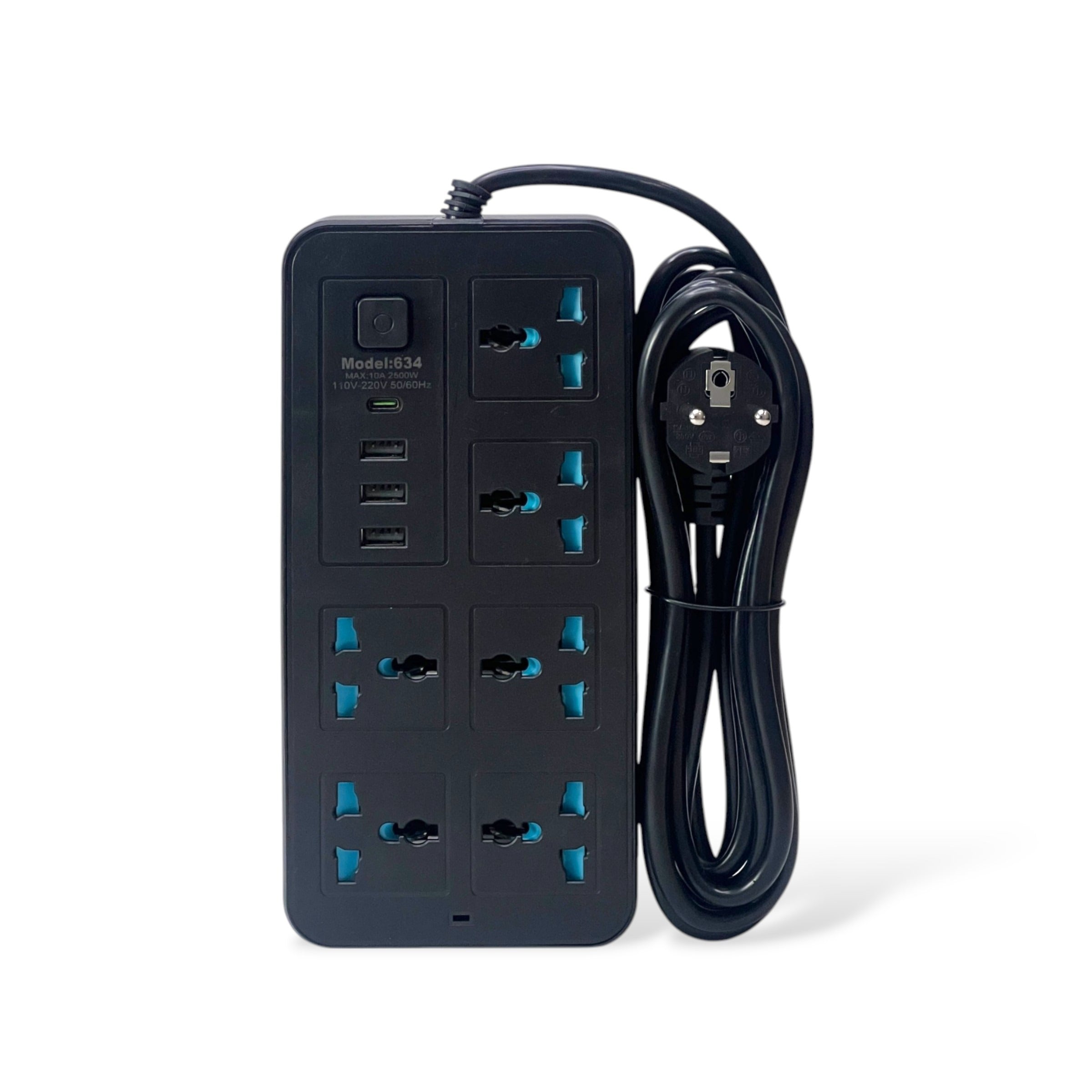 A high-capacity, multi-functional power strip designed to support various international plug types and charge multiple devices simultaneously. Ideal for home, office, or travel use.