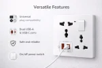 This Universal Wall Socket is designed to meet the needs of modern homes and offices. Compatible with plug types from multiple regions (US, UK, EU, AU, etc.), it includes integrated USB-A and USB-C charging ports for direct device charging without the need for adapters. Featuring a manual ON/OFF switch and safety protections, this wall socket is ideal for a clutter-free and efficient charging setup.