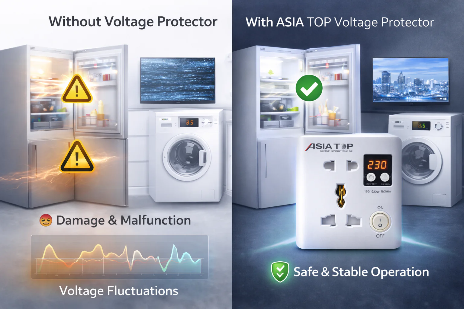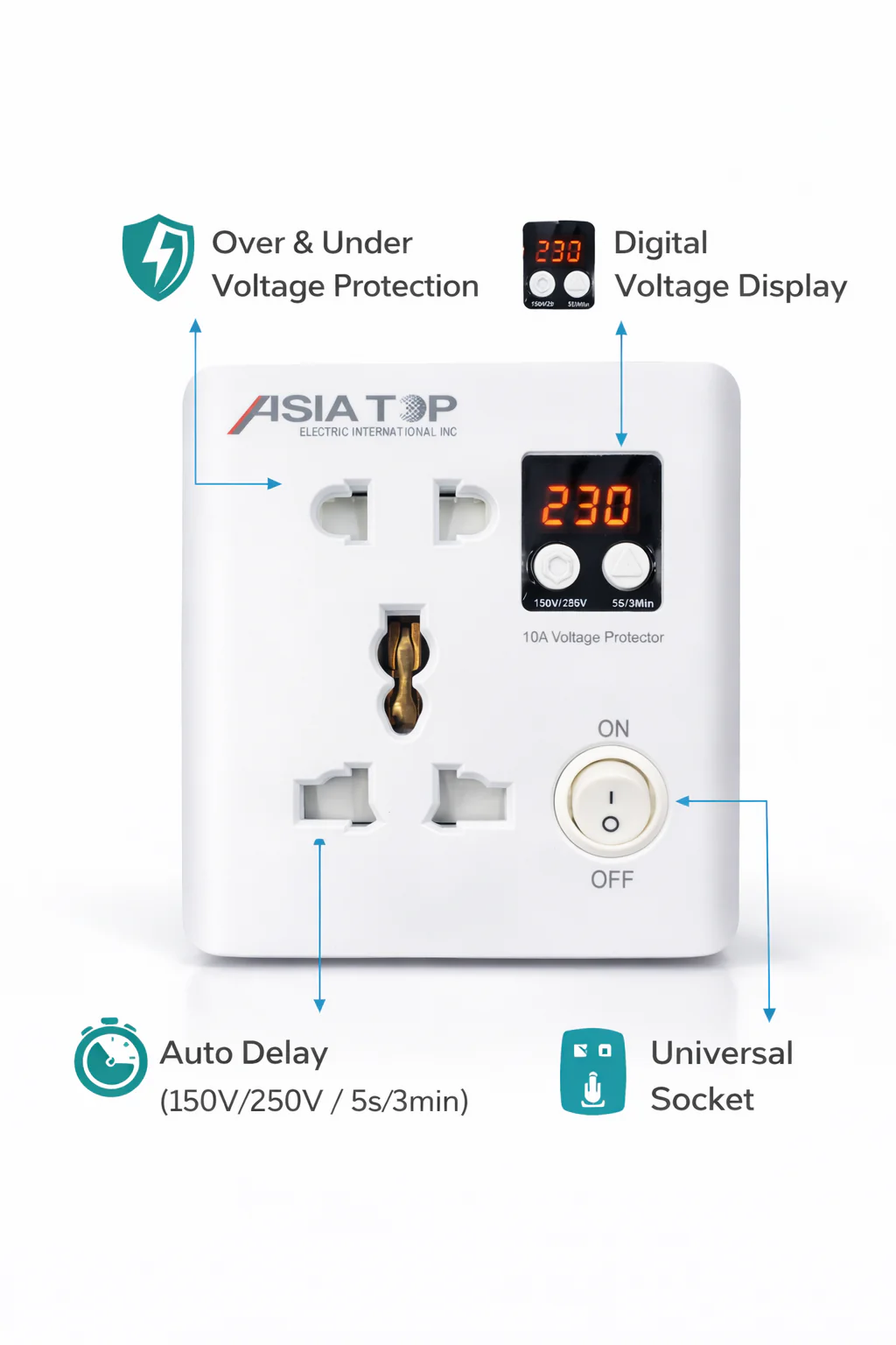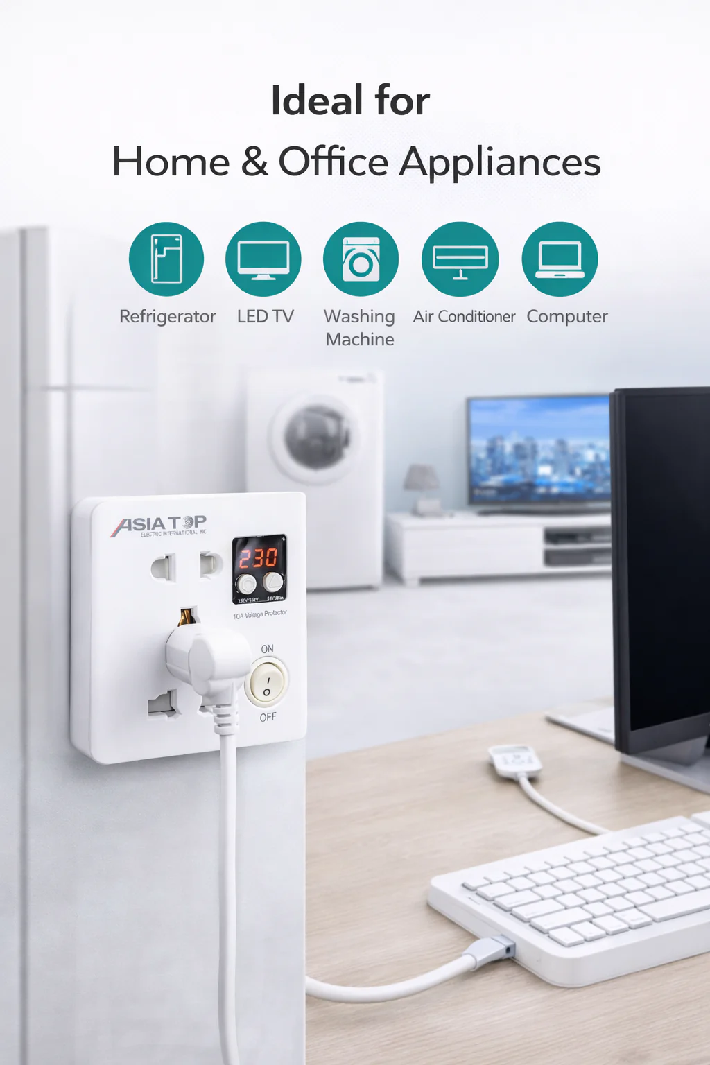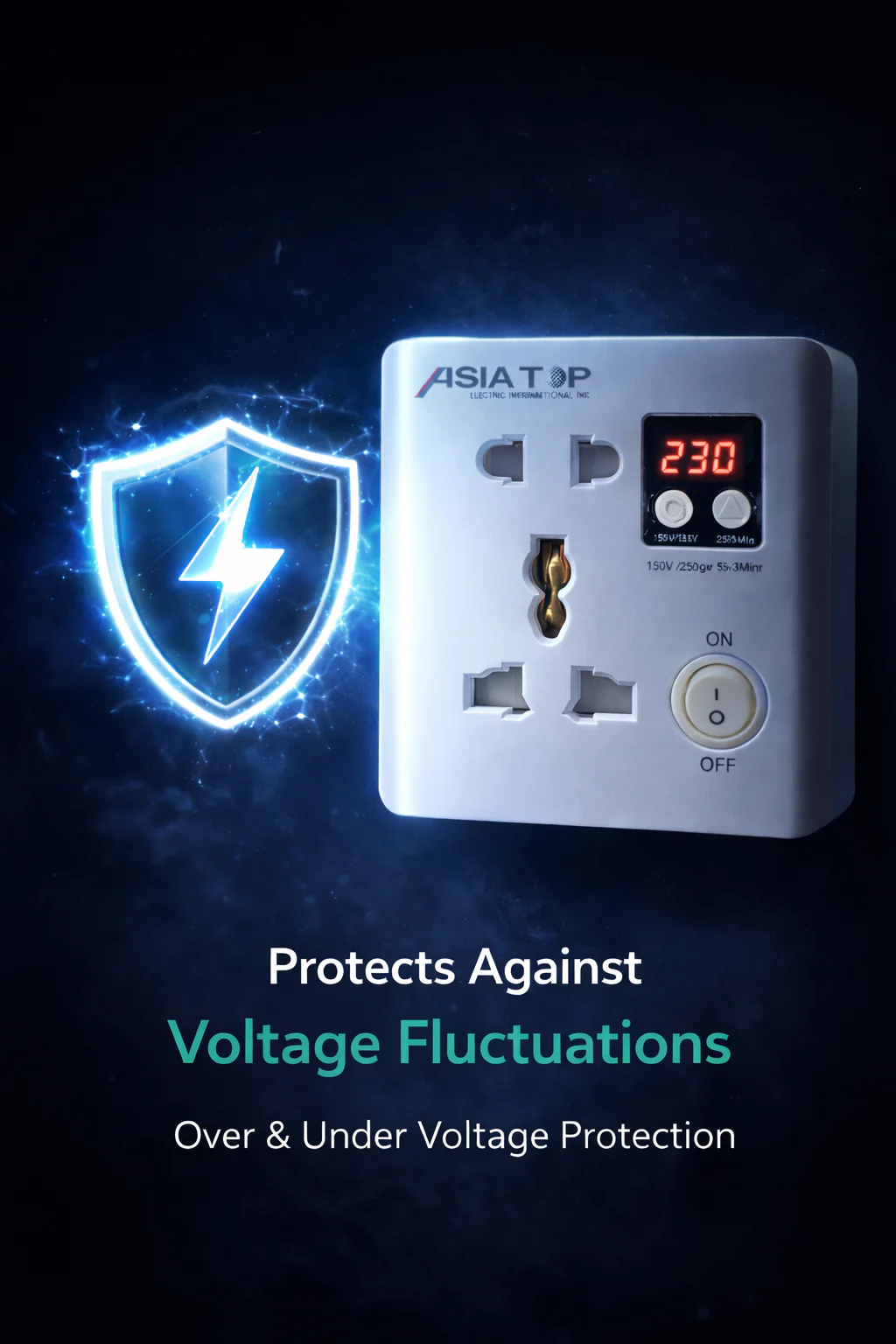 This device is used to protect electrical appliances from voltage fluctuations by automatically disconnecting the power supply if the voltage goes beyond the set safe range. It helps prevent damage to equipment from under-voltage or over-voltage situations.