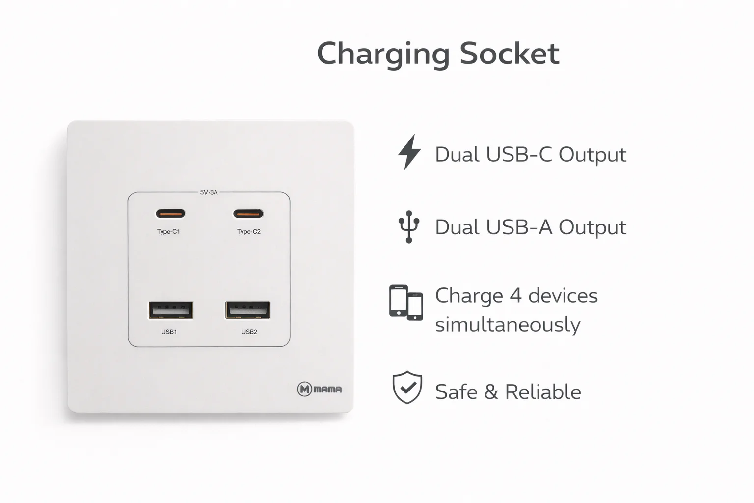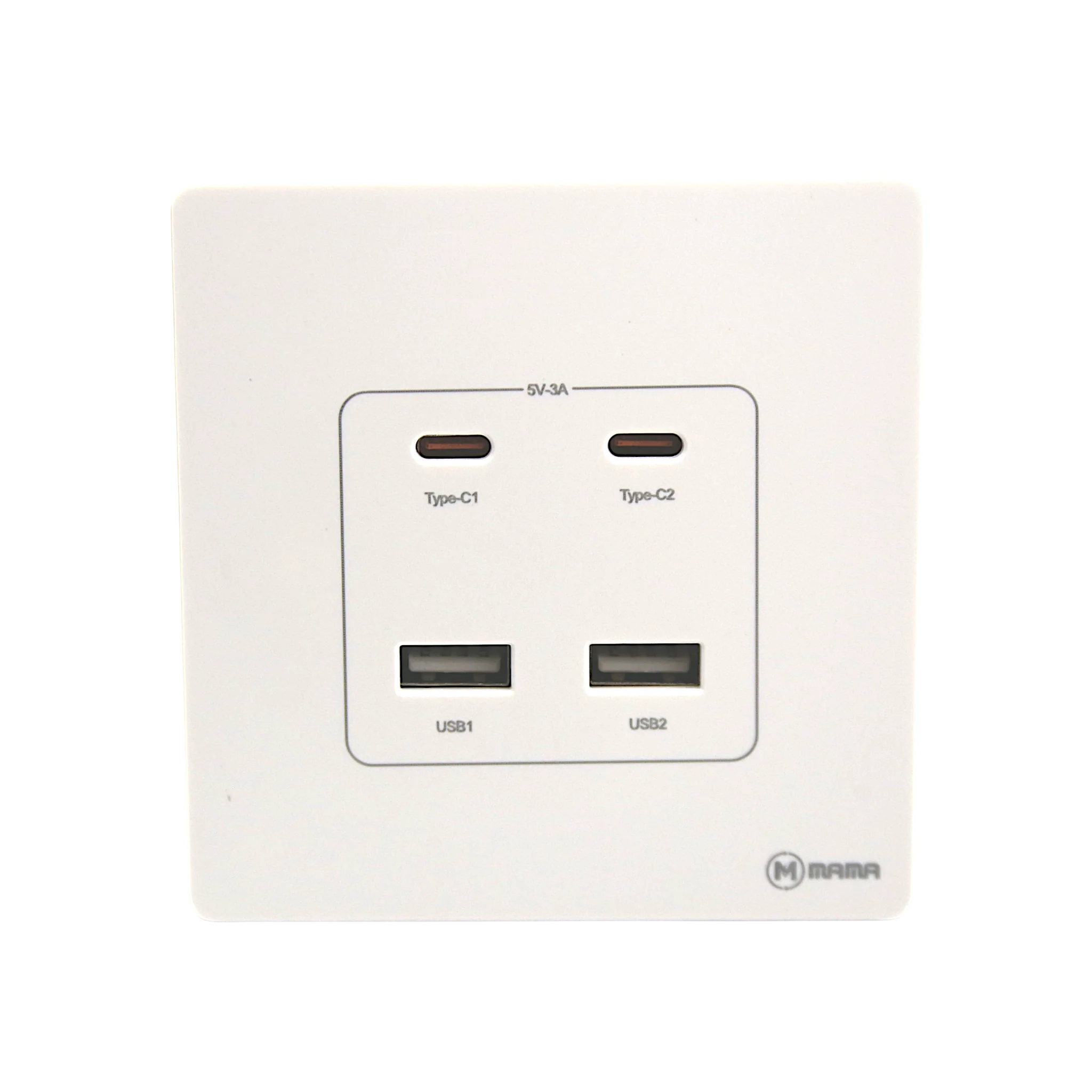 Wall-Mounted USB Charging Socket – 2x Type-C + 2x USB-A Ports | 5V/3A