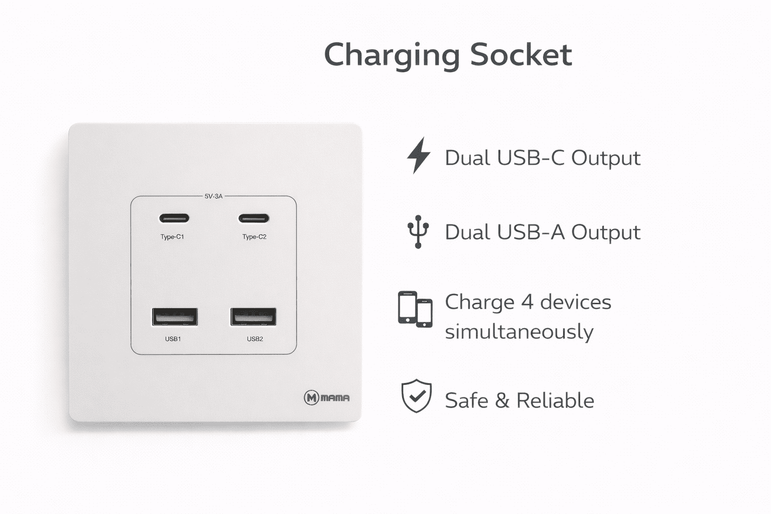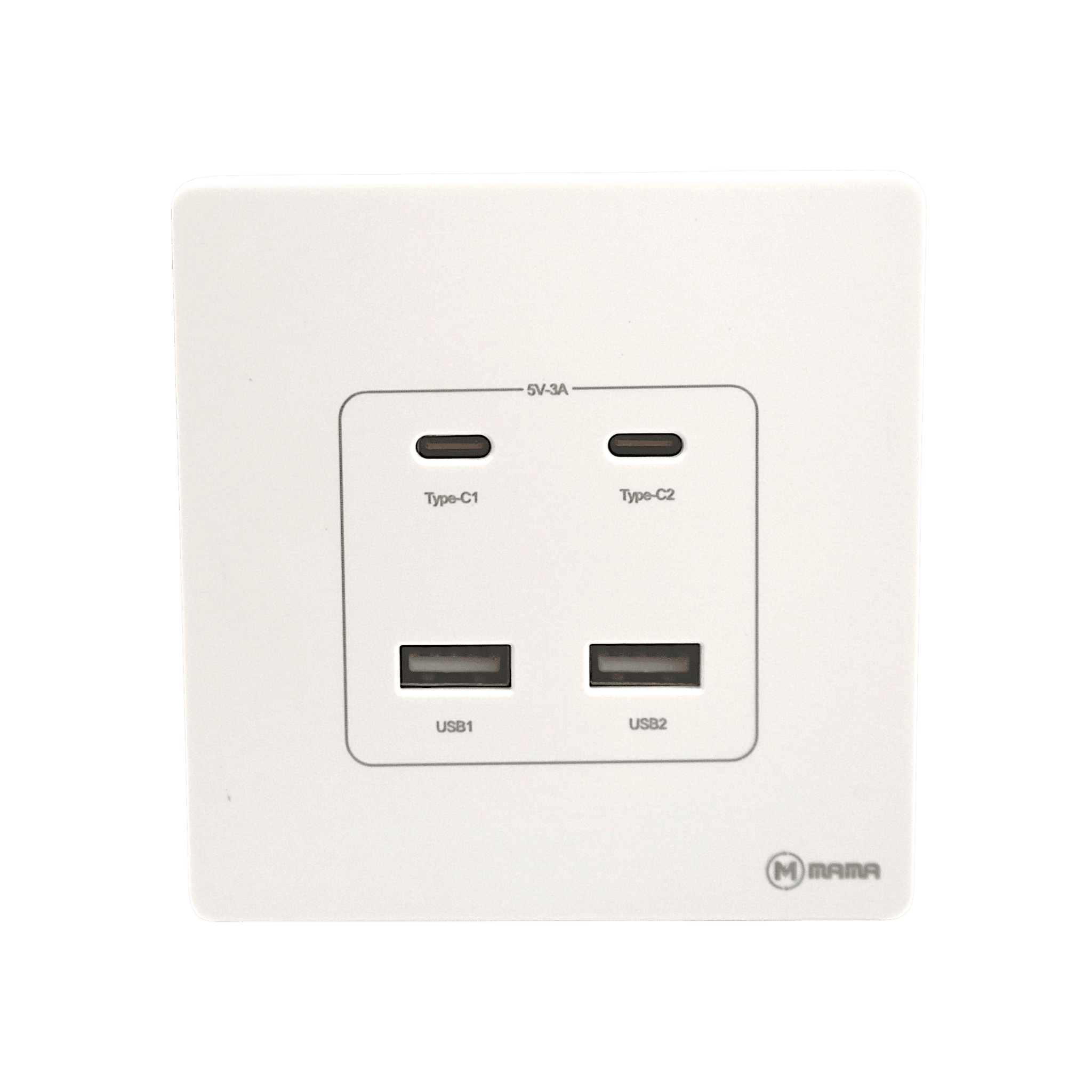 Wall-Mounted USB Charging Socket – 2x Type-C + 2x USB-A Ports | 5V/3A