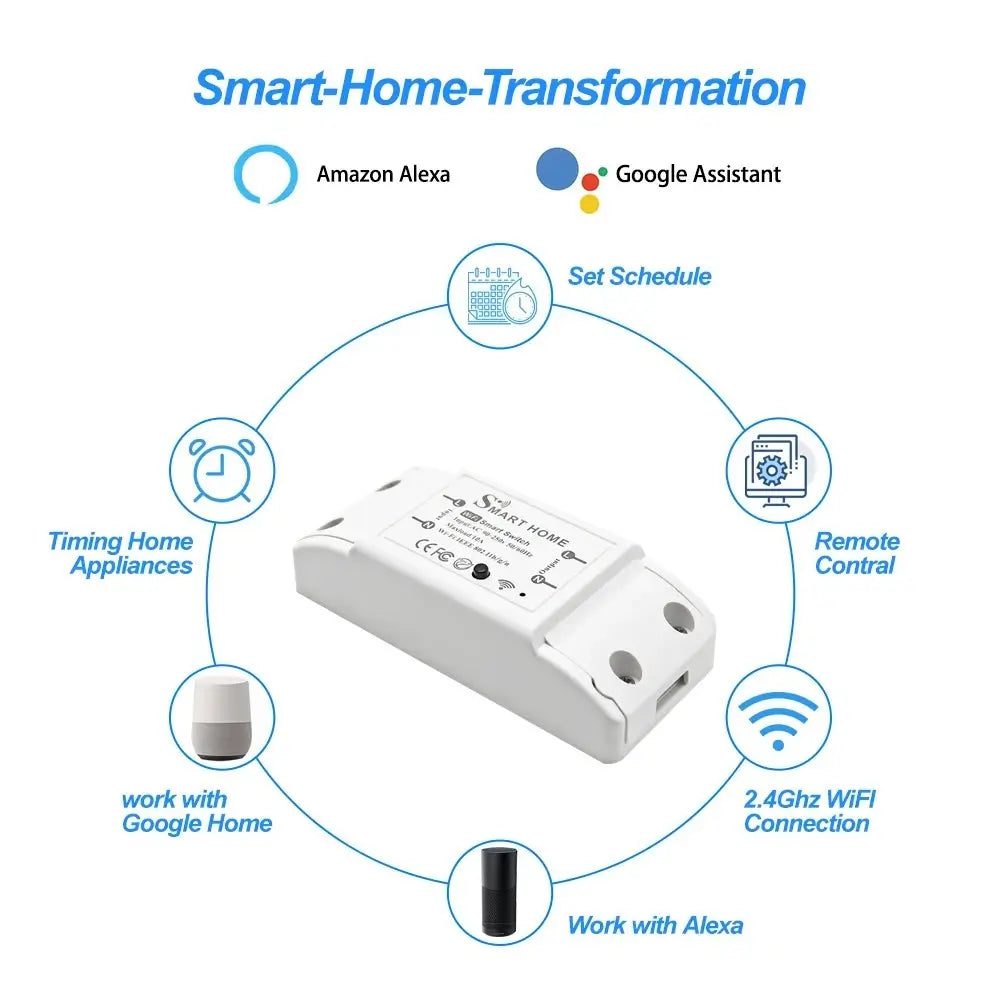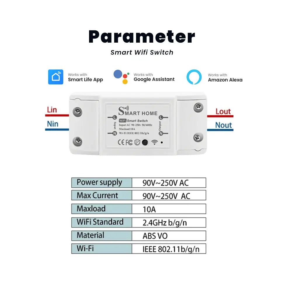 Upgrade your home with seamless smart automation using this Wi-Fi Smart Switch. Designed for quick integration into your existing electrical setup, it lets you control appliances and lighting remotely through your smartphone or by voice commands with Amazon Alexa or Google Assistant.