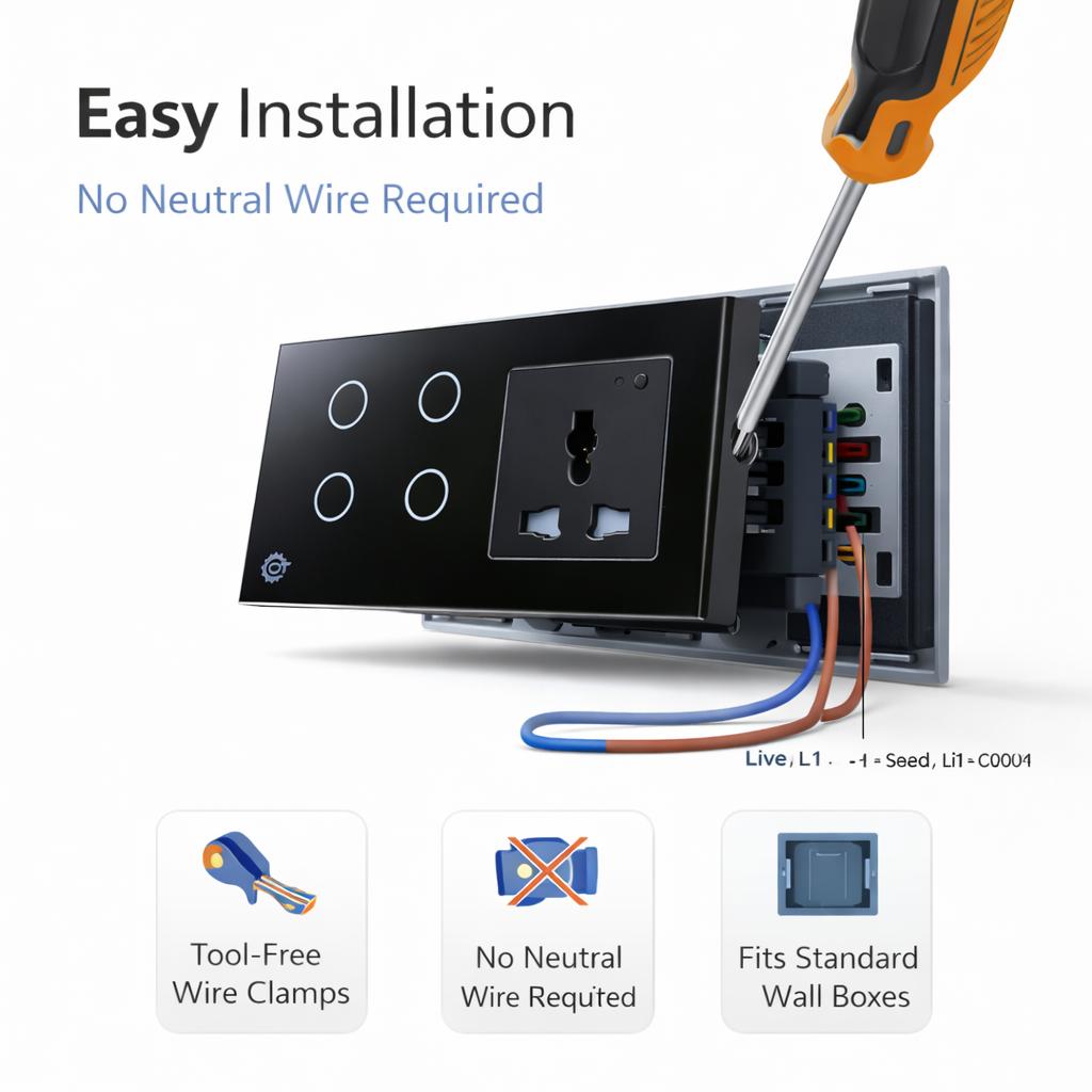 No Neutral Wire Required: Designed for easy installation in standard wall boxes without the need for complex rewiring.